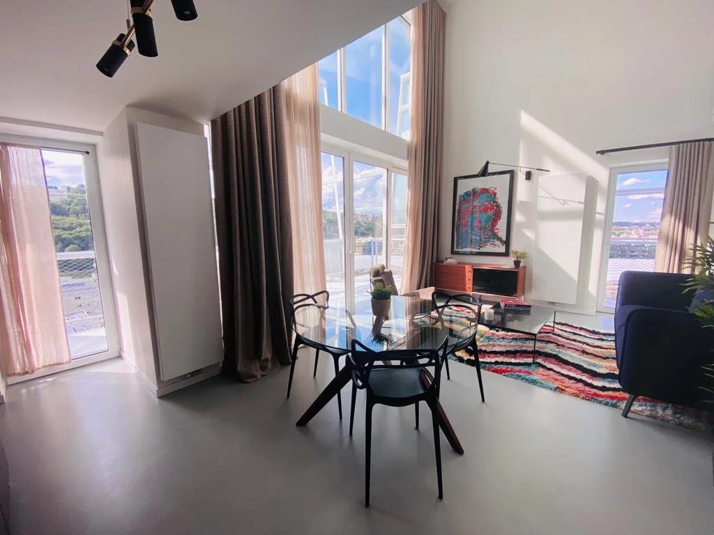 Un client minimaliste, une lumière naturelle sans égal, un salon cathédrale de plus de 5m de hauteur, bienvenue dans ce duplex de la fameuse Tour Ycone !